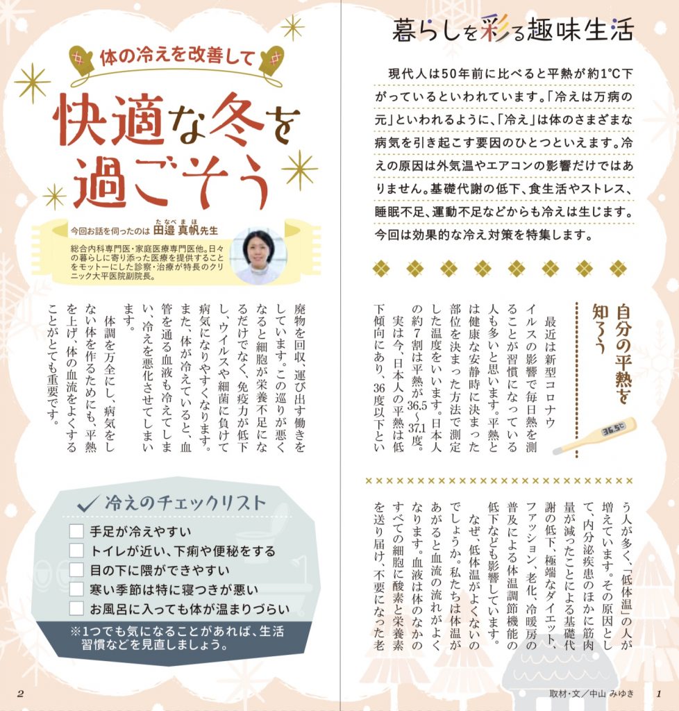 」についての記事が出ました。これからの時期、冷えに要注意です。冷え性のご相談いつでも受け付けております。